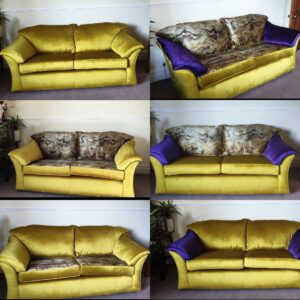 We have just completed this stunning upholstery project for a customer with a flair for modern design. Using a luxurious velvet we brought their vision to life by introducing a beautiful printed velvet on select sections of the sofa and to add a final touch of drama, we finished it off with striking deep purple…