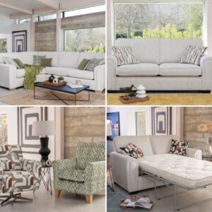 This modern suite with retro charm is the latest addition to our showroom, featuring refreshed sophisticated tones and textured plain chenille’s with globally inspired accents. This versatile collection includes: Grand, Three & Two Seat Sofas Two & Three Seat Sofa-beds Snuggle Chair, Chair, Accent & Swivel Chair Optional scatter back on selected pieces Matching stool…